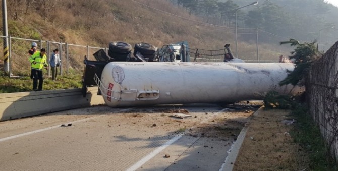 한편, 사고 현장에는 탱크로리에 실려있던 등유 일부가 도로로 흘러나왔으며 한 동안 기름 제거작업 등 사고 수습으로 인해 통행이 중단됐다 재개된 상태다.