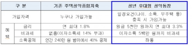 청년 우대형 청약통장은 무주택 세대주로 가입 자격을 제한해 부모와 함께 사는 청년은 통장에 가입하지 못해 문제점으로 지적돼 왔다.