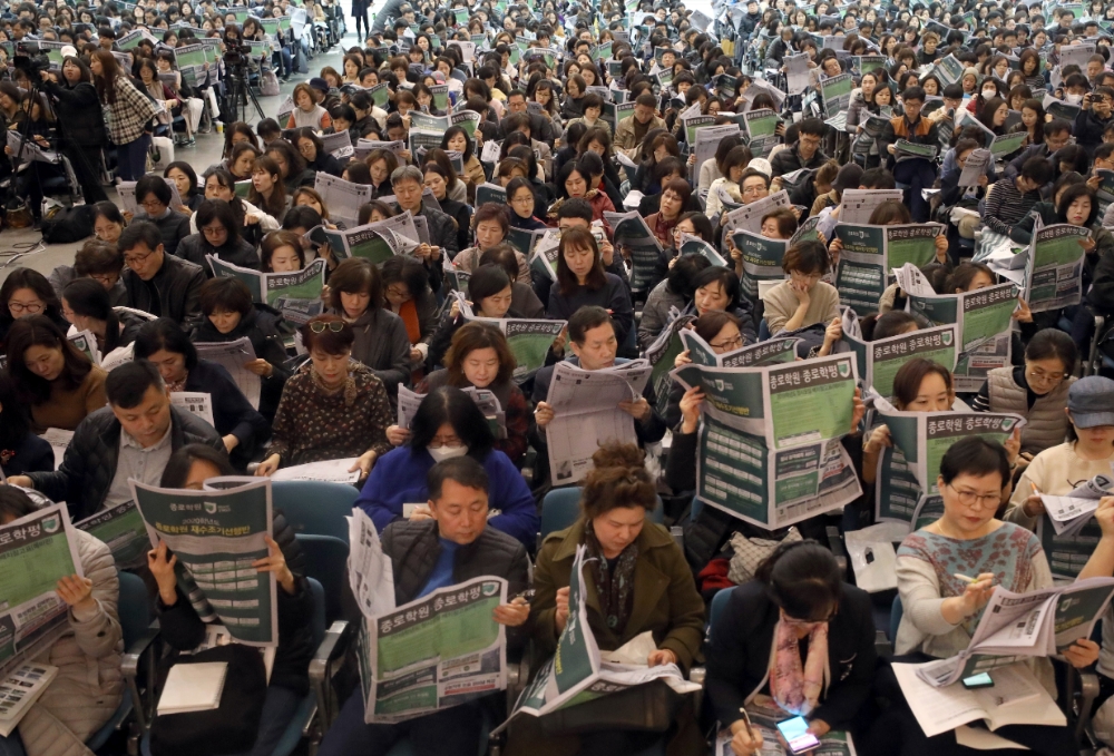 이미지 확대보기서울 서대문구 이화여자대학교 대강당에서 열린 종로학원 주최 입시설명회에서 학생, 학부모들이 정시모집 배치참고표를 보며 설명을 듣고 있다. 29일부터 대학입시 정시모집 원서접수가 시작된다. 사진=뉴시스[글로벌이코노믹 노정용 기자] 2019학년도 대입 정시모집 원서 접수가 29일부터 시작된다.
