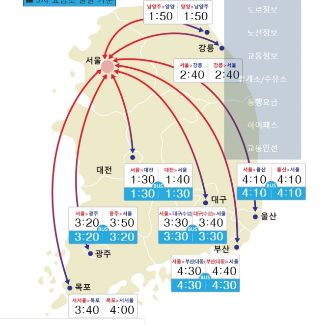 도로공사는 6일에도 이른 아침에 출발하는 귀경 차량으로 오전부터 늦은 밤까지 고속도로가 혼잡할수 있다고 보고있다.