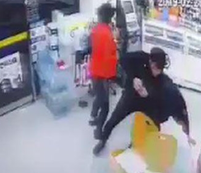 인근 지구대 순찰차가 출동할때 편의점 앞을 지나던 B씨(43)씨가 이 범행현장을 목격하고 칼을 든 A씨를 때려 눕혀 경찰에 신병을 넘겼다.
