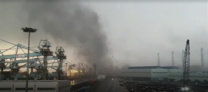 뜯겨 날아간 공장 지붕으로 제철소뿐 아니라 주변 공장과 인근 차량들도 피해를 당했다.