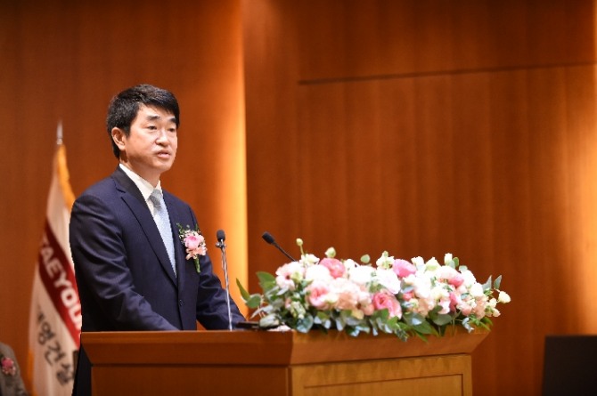 25일 서울 여의도 태영 사옥에서 열린 ‘명예회장 추대 및 회장 취임식’에서 윤석민(55) 부회장이 회장으로 취임했다.