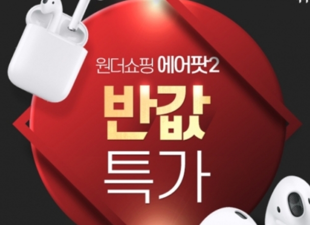 8일 원더쇼핑에 따르면 오전 10시부터 매 시각 정각마다 국내에서 아직 출시되지 않은 에어팟2 무선충전 지원 모델과 에어팟 무선충전 케이스를 해외직구 방식으로 50개씩 한정수량 판매한다.