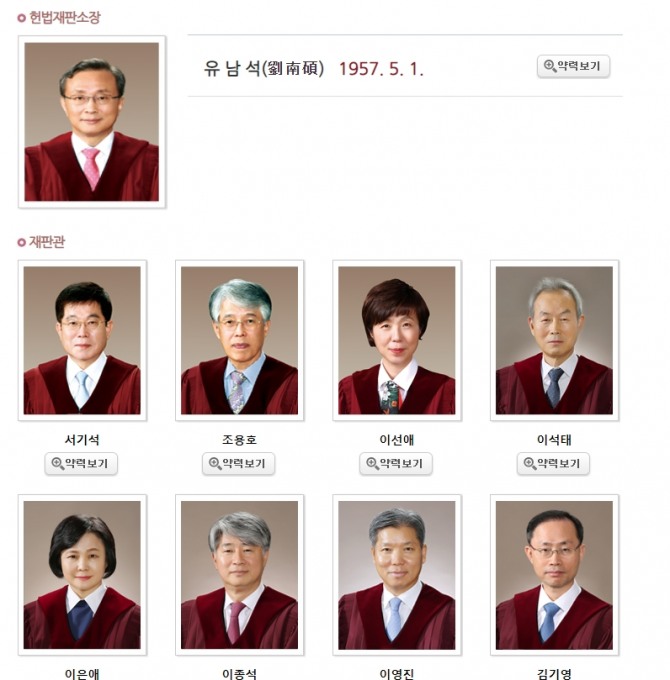 이미선 헌법재판관 후보자가 본인 소유 주식을 전부 매 사진은 은 헌법재판소 재판관 명단.