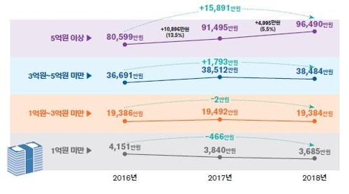 총자산은 2016년 3억2691만 원에서 2017년 3억3951만 원으로 늘어난 데 이어 지난해에는 17.9%가 증가한 것으로 나타났다.