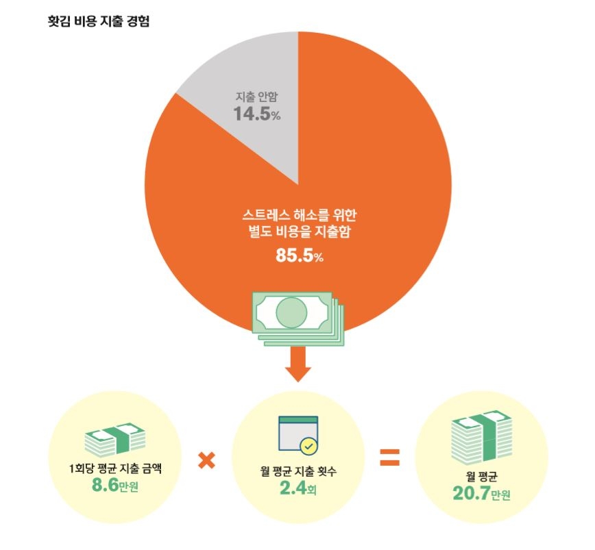 월평균 지출 횟수는 2.4회로, 1회에 8만6000원꼴로 쓰는 것으로 나타났다.