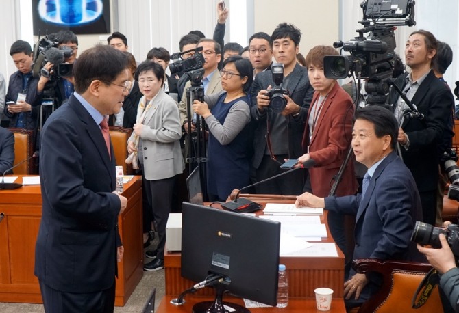 이날 자유한국당 위원들은 회의를 이유로 청문회장에 나타나지 않으면서 30분가량 지연됐다. 이후 과방위 자유한국당 간사인 김성태 의원이 노웅래 과방위 위원장(더불어민주당)에게 "유영민 장관이 불출석한 상태에서 청문회를 진행할 수 없다"며 연기를 공식 요청했다.