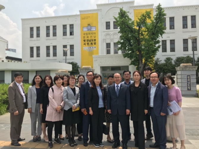 이미지 확대보기이날 행사는 5‧18민주화운동 39주년을 맞이해 5‧18기록관 관람과 옛 전남도청 본관 등 5개동을 14일부터 3개월간 전면 개방함에 따라 교원 연수와의 연계 방안을 적극 모색하기 위함이다.