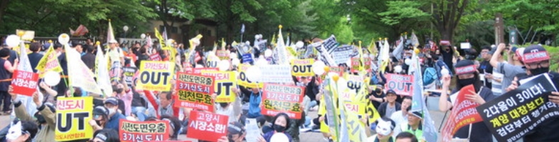이날 집회에 참석한 주민들은 '김현미 OUT, 신도시 계획 철회' ‘더이상 못참아.’등 현수막을 동원해 집회를 열고 3기 신도시 조성계획 철회를 요구했다.