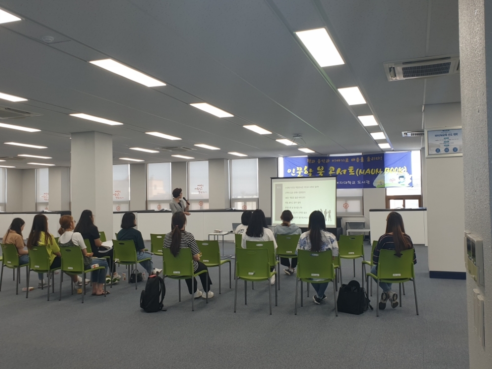이미지 확대보기이 프로그램은 교수와 학생이 책을 매개로 마음을 소통하기 위해 도서관에서 기획한 행사다.