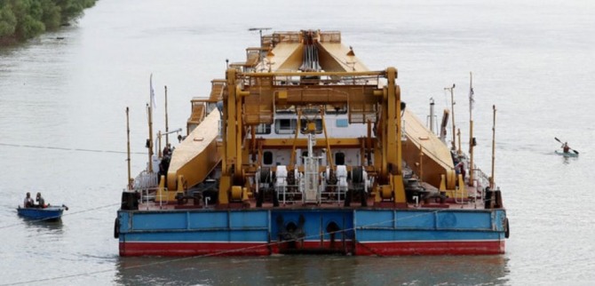 이미지 확대보기유람선 인양작업에 동원될 대형 크레인 '아담 클라크'가 5일 오후(현지시각) 헝가리 부다페스트 다뉴브강 상류에 정박해 있다. 사진=뉴시스
