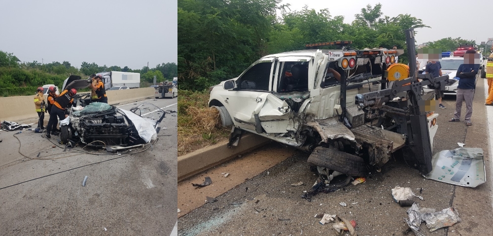 견인차 기사 D(27)씨와 다른 견인차 E(28)씨도 다쳐 병원으로 옮겨졌다. 트레일러 기사는 부상을 입지 않았다.