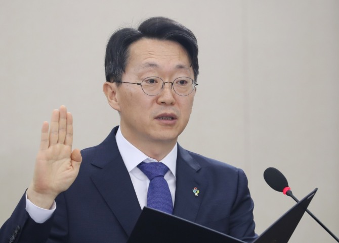 26일 서울 여의도 국회에서 열린 기획재정위원회 전체회의 국세청장 후보자(김현준) 인사청문회에서 김 후보자가 선서를 하고 있다./뉴시스