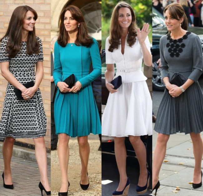 이미지 확대보기임신중 머터니티 웨어에서도 미니원피스를 애용하던 캐서린비. 배가 눈에 띄지 않는 부드러운 플레어 미니와 허리가 강조되지 않는 시프트 드레스를 입은 모습은 엄마 같은 분위기를 연출하면서 호평을 받자 산후에도 동일한 유형의 원피스가 가끔 등장하게 되었다.