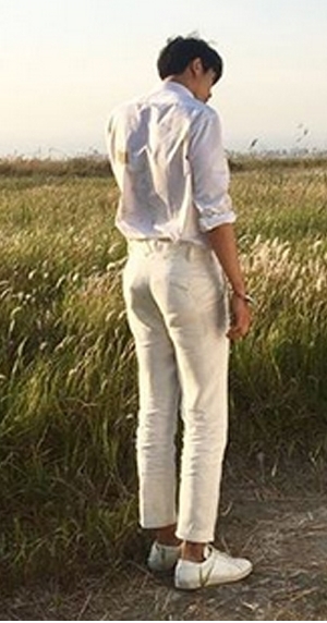 사진속 임슬옹은 초원위를 배경으로 뭔가를 골똘히 생각하는 듯한 모습이다.