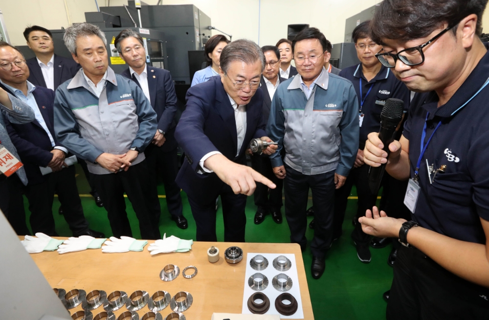 이어진 임직원들과 간담회에서 문 대통령은 일본의 수출규제 조치가 SBB테크처럼 기술력으로 무장한 강소기업에는 오히려 도약의 기회가 될 수 있다며 일본을 이겨낼 수 있다는 자신감을 갖고 노력해달고 당부했다.