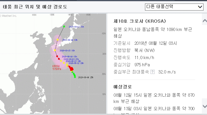 레끼마는 12일 낮 1시쯤 중국 산둥반도를 지난 뒤 열대저압부로 약화해 소멸할 것으로 보인다.