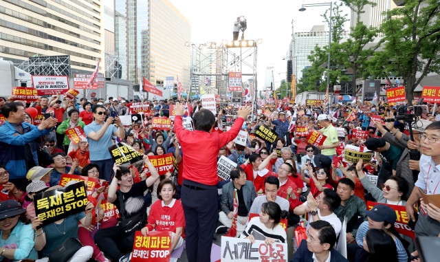 여권에서는 한국당의 장외투쟁을 "민심을 거스르는 제2차 가출 대권 놀음"이라고 깎아내리며 성토하고 있다.