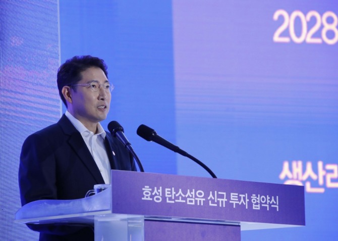 조현준 회장은 이날 협약식에서 "현재 1차 공장 증설이 진행되고 있다"며 "향후 10개 라인 증설이 마무리되면 효성은 현재 세계 11위(시장점유율 2%)에서 단숨에 세계 3위(10%) 첨단소재 기업으로 발돋움할 수 있게 된다"고 설명했다.