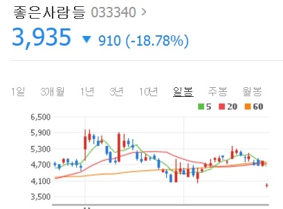 이날 좋은 사람들 주가는 오전 10시 18% 떨어져 3만 935원에 거래되고 있다.
