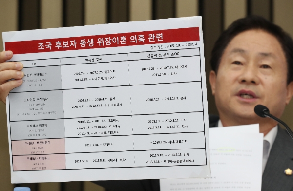 앞서 자유한국당 주광덕 의원은 지난 3일 기자회견을 열고 공익제보로 받았다며 조 후보자의 딸 학생부를 공개했다.