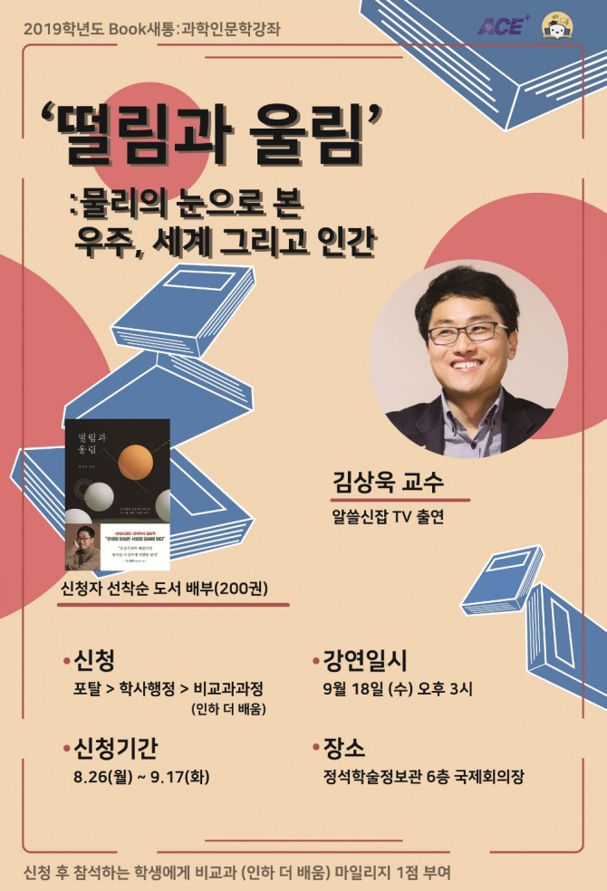 인하대는 이번 강연에 앞서 학생들을 대상으로 여름방학 기간을 이용해 <김상욱의 과학공부> 독서 후기를 공모해 우수작 10편을 선정해 시상한다.