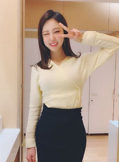 사진속 김가영 기상캐스터는 레몬색 블라우스와 검은 치마을 입고 남심을 저격하고 있다.