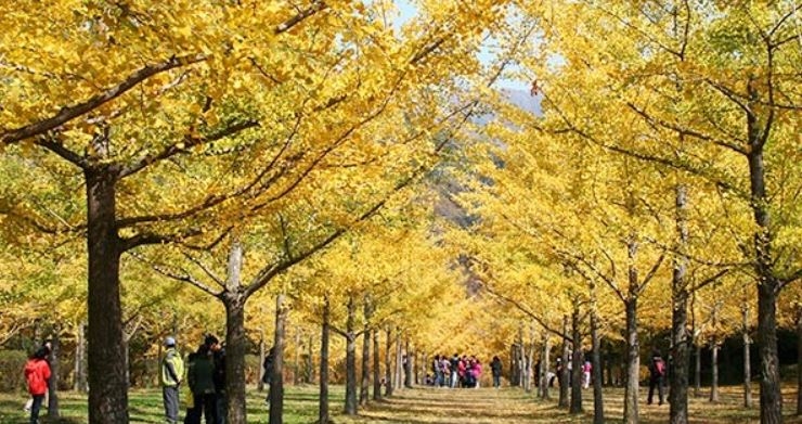 노란 은행나무 2,000여 그루가 자라는 국내 최대 규모의 은행나무숲은 가을을 특별하게 즐기고 싶은 로맨티스트, 멋진 사진을 남기고자 하는 사진 애호가들, 아이들과 좋은 추억을 만들려는 아름다운 홍천 은행나무숲을 지녔다.