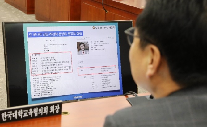 이미지 확대보기교육부 관계자는 "한국연구재단에 해외학위조회 서비스를 요청해 최 총장 학력을 직접 조회할 예정"이라며 "최 총장의 개인정보 조회 동의는 이미 얻은 상태"라고 밝혔다.