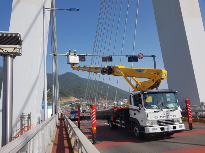 이미지 확대보기시설안전공단은 최근 경남 창녕군에서 지진이 발생하는 등 경상남도가 더 이상 지진 안전지대가 아니라고 판단, 지진으로 인한 교량파손, 화재 등 복합재난을 가상해 사천시 등과 합동으로 삼천포대교에서 이번 훈련을 진행했다.