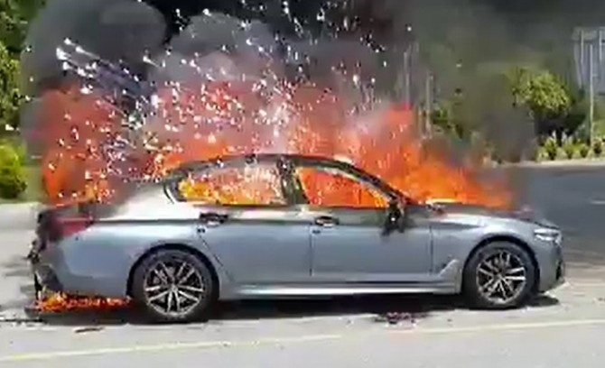 3일 밤 9시 3분께 경기도 용인시 수지구의 도로를 달리던 SUV차량 BMW X6에서 불이 나 약 20분 만에 꺼졌다.
