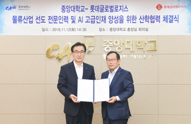 협약식에는 중앙대 김창수 총장과 롯데글로벌로지스 박찬복 대표이사를 비롯한 관계자들이 참석했다. 양 기관은 물류산업 전반에 대한 공동 연구를 추진하고, 향후 물류산업을 선도할 핵심 전문인력을 양성하는 데 힘을 모으기로 합의했다.