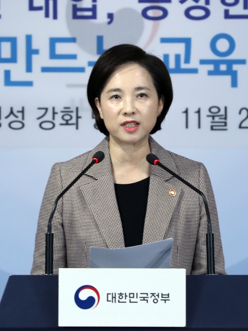 유 부총리는 이날 브리핑에서 "정시 확대라는 국민적 요구는 학생부종합전형(학종)의 불신에서 시작됐다"며 "불신받는 학종으로 학생을 선발하는 비율이 높은 대학에 대해서는 불가피하게 정시비율 균형을 맞출 필요가 있겠다고 판단했다"고 정시 확대 배경을 설명했다.