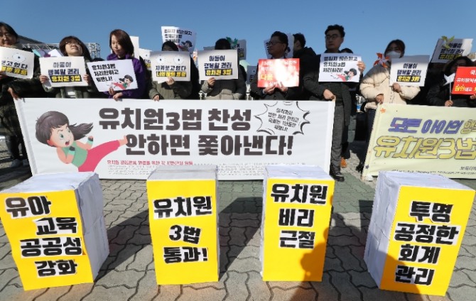 유치원 3법은 민주당이 마련한 유아교육법과 사립학교법, 학교급식법 개정안을 말한다.