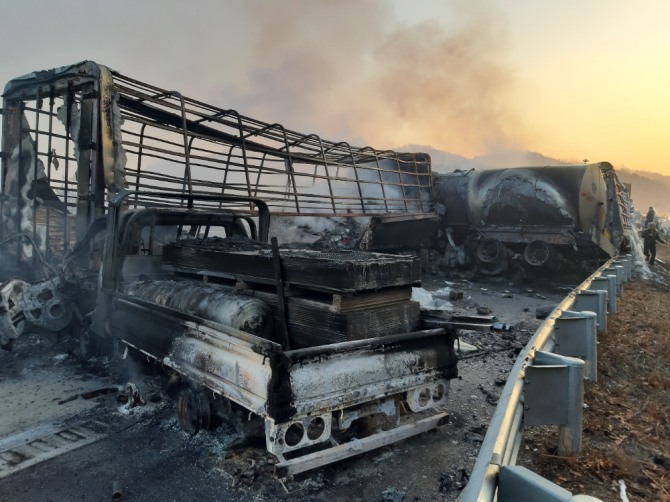 이미지 확대보기14일에도 오전 4시 41분께 경북 군위군 소보면 상주-영천고속도로 상행선에서 화물트럭 등 차량 10대가 연쇄 추돌, 운전자 등 3명이 숨지고 6명이 부상한 사고가 발생했다.