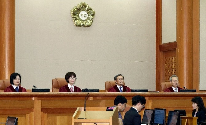이미지 확대보기헌재는 27일 열리는 서울 헌재 대심판정에서 지난 2016년 3월 강모 할머니 등 일제강점기 일본군 위안부 피해자들이 정부의 위안부 문제 합의 발표 위헌성을 확인해 달라는 헌법소원 사건을 선고한다.