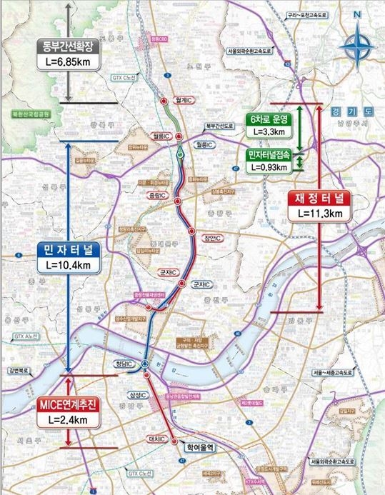 민간사업자는 성북구 석관동 월릉IC에서 강남구 청담동 삼성IC에 이르는 10.4㎞ 구간에 지하 터널을 조성하게 된다.