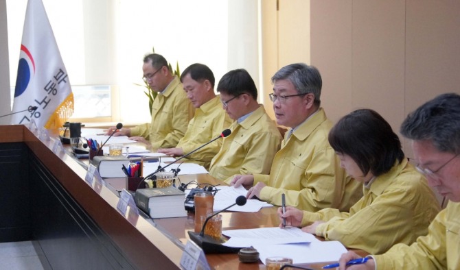 이 장관은 또 "감염병 예방법에 따라 입원·격리 시 보건복지부에서 유급휴가 비용을 지원할 예정이며, 이 경우 사업주는 유급휴가를 줘야 한다"며 "예방법에 따른 격리가 아니더라도 감염병 확산을 막기 위해 필요시 휴가·휴업을 활용토록 관련 내용을 적극 지도해 달라"고 했다.
