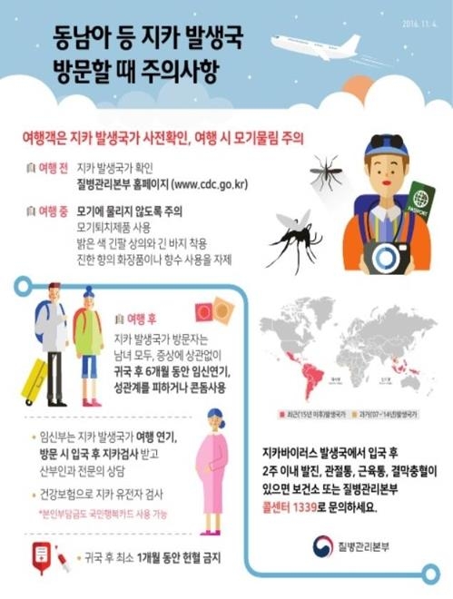 지카바이러스는 B·C형간염, 일본뇌염, 뎅기열 등과 함께 격리는 필요 없지만, 계속 감시할 필요가 있는 3급 법정 감염병에 속한다.