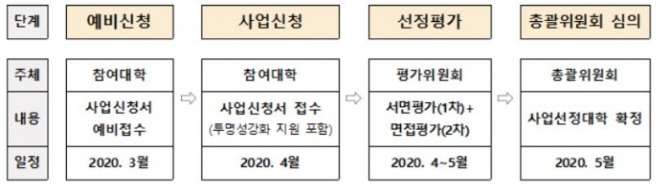 사업 참여를 희망하는 수도권 대학은 대학수학능력시험 위주 전형의 비율을 30%(16개 상위권 대학은 2023학년도까지 40%), 지방대학은 학교생활기록부교과전형 또는 수능위주전형 비율을 30%까지 조정하는 전형비율 조정계획을 2022학년도까지 참여 조건으로 제출해야 한다.