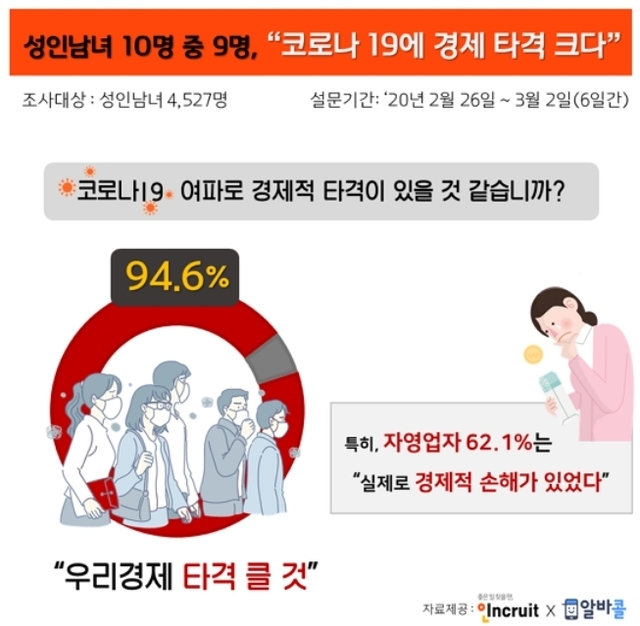 특히 자영업자는 손해를 봤다는 응답이 62.1%나 됐다.