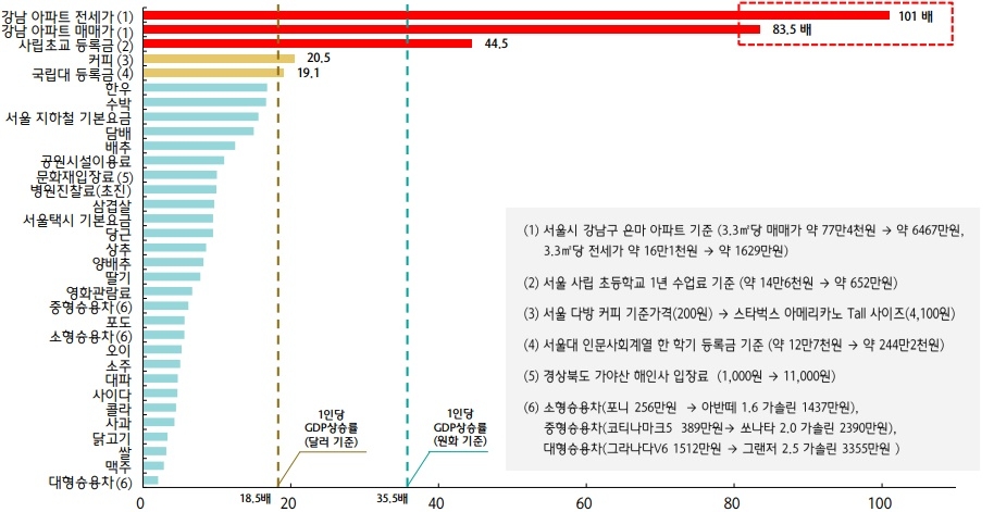 같은 기간 1인당 국내총생산(GDP)상승률은 11배였다.
