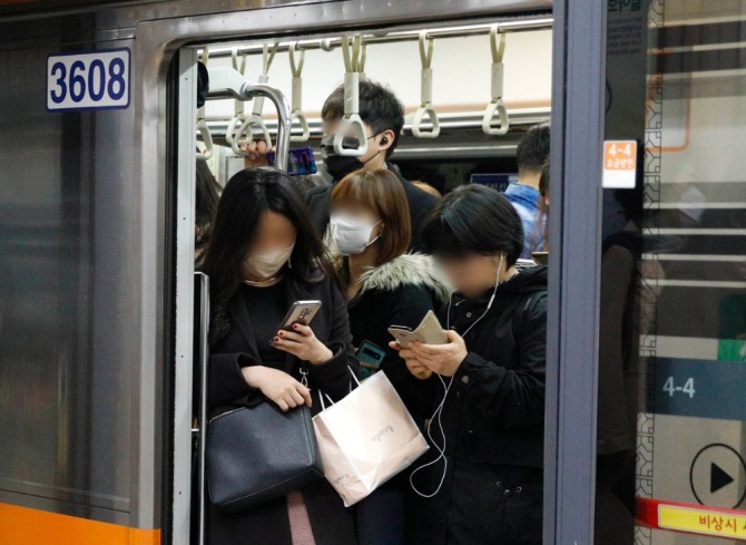 앞으로 지하철과 시외버스 등 대중교통 차량의 실내 공기질 측정이 의무화된다.서울 지하철 열차안 풍경.사진=뉴시스이미지 확대보기