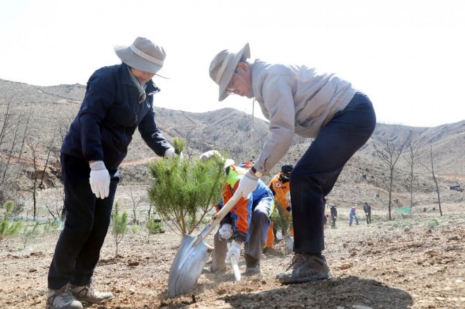 이날 나무 심기에는 산불 진화에 기여했던 시민들이 함께했다.