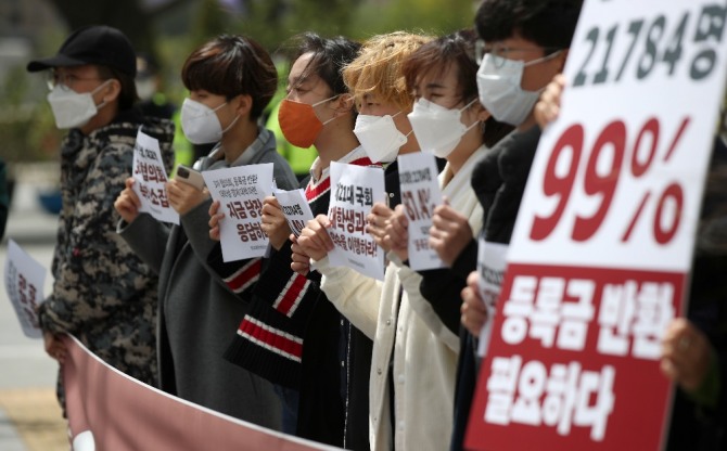 이미지 확대보기대학 측은 장학금을 지급하겠다는 입장인 반면 학생들은 등록금 반환을 요구해 큰 입장차를 보이고 있다.