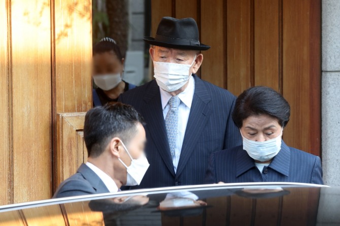 마스크를 착용한 전씨는 차량에서 내린 직후 법정으로 발걸음을 옮겼다.
