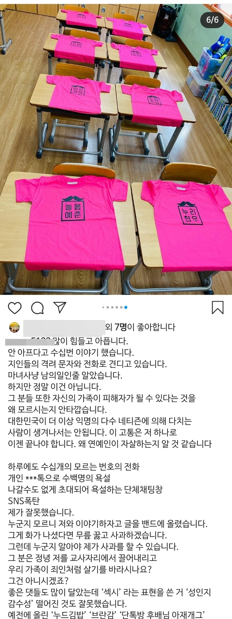 또 "대한민국이 더 이상 익명의 다수 누리꾼에 의해 다치는 사람이 생겨나서는 안 된다"며 "이 고통은 저 하나로 이젠 끝나야 한다. 왜 연예인이 자살하는지 알 것 같다"고 했다.