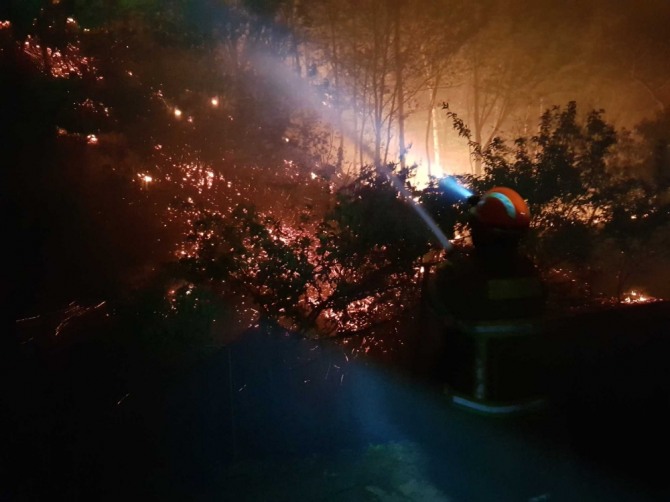 산불은 1일 오후 8시 4분께 고성군 토성면 도원리의 한 주택에서 난 불이 인근 야산으로 옮아 붙어 시작됐다.