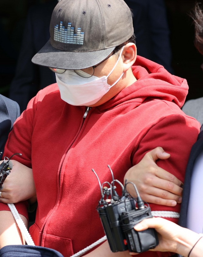 빨간색 후드티를 입고 검은색 모자와 흰색 마스크로 얼굴을 가린 문씨는 '혐의를 인정하느냐', '갓갓이 맞느냐'는 등의 취재진의 질문에 묵묵부답으로 일관하면서 호송차에 올라 경찰서를 빠져나갔다.